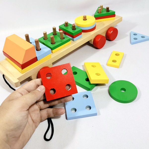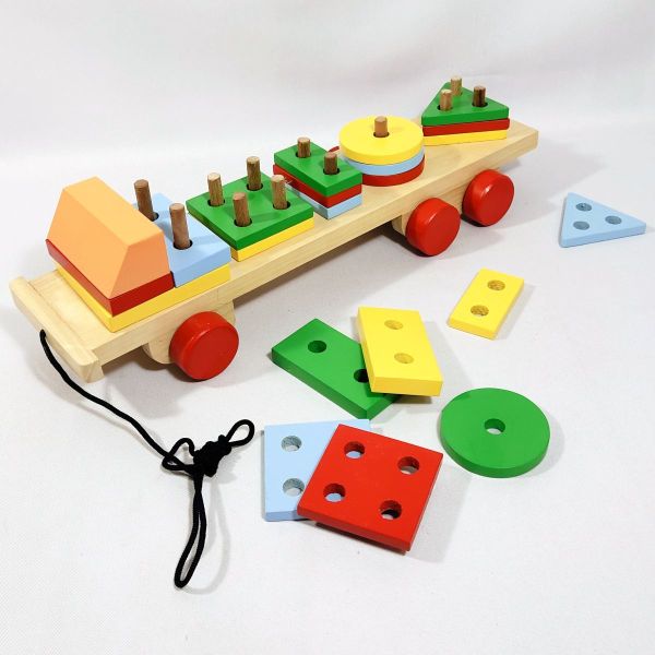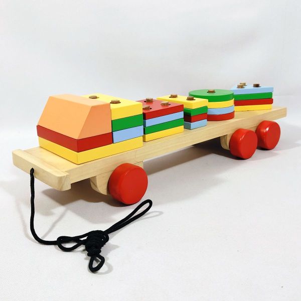 Mainan truk geometri adalah mainan yang sangat menarik bagi anak. Ada tali sebagai penarik, sehingga dapat berfungsi sebagai mainan bergerak